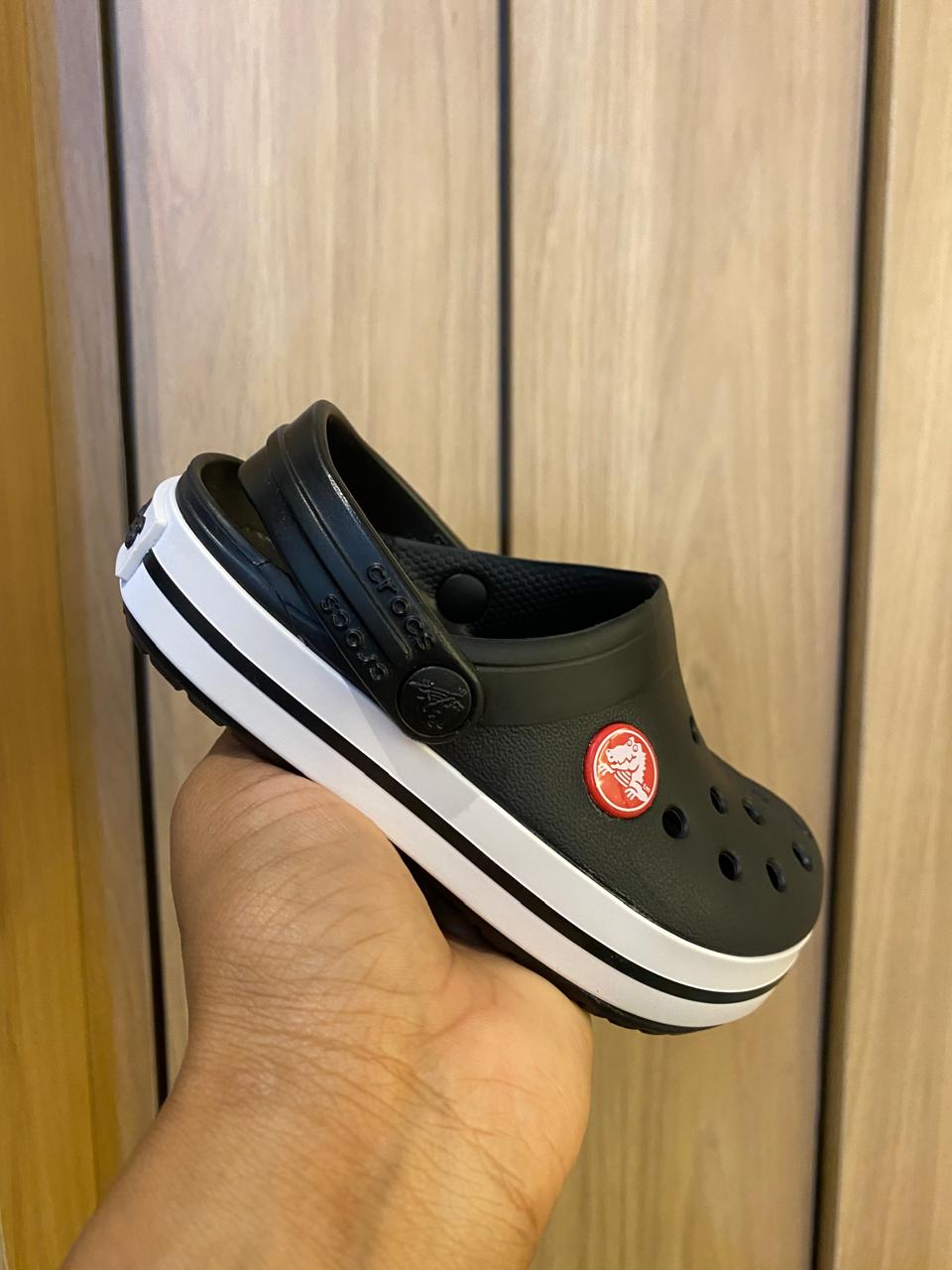 Design: Preto com detalhes em branco e logo Crocs