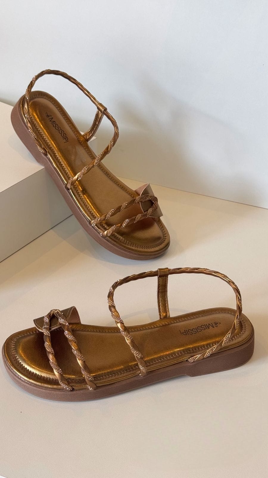 Sandália Rasteira Mississipi – Estilo, Conforto e Brilho na Medida Certa