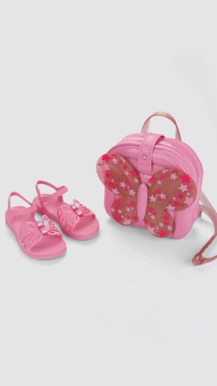 Mochila temática: acompanha linda mochila rosa com aplicação de borboleta decorada com estrelas, ideal para carregar brinquedos, acessórios ou pequenos objetos.