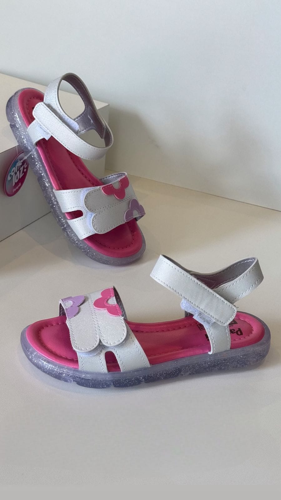 Cor: Branco com detalhes em rosa e lilás