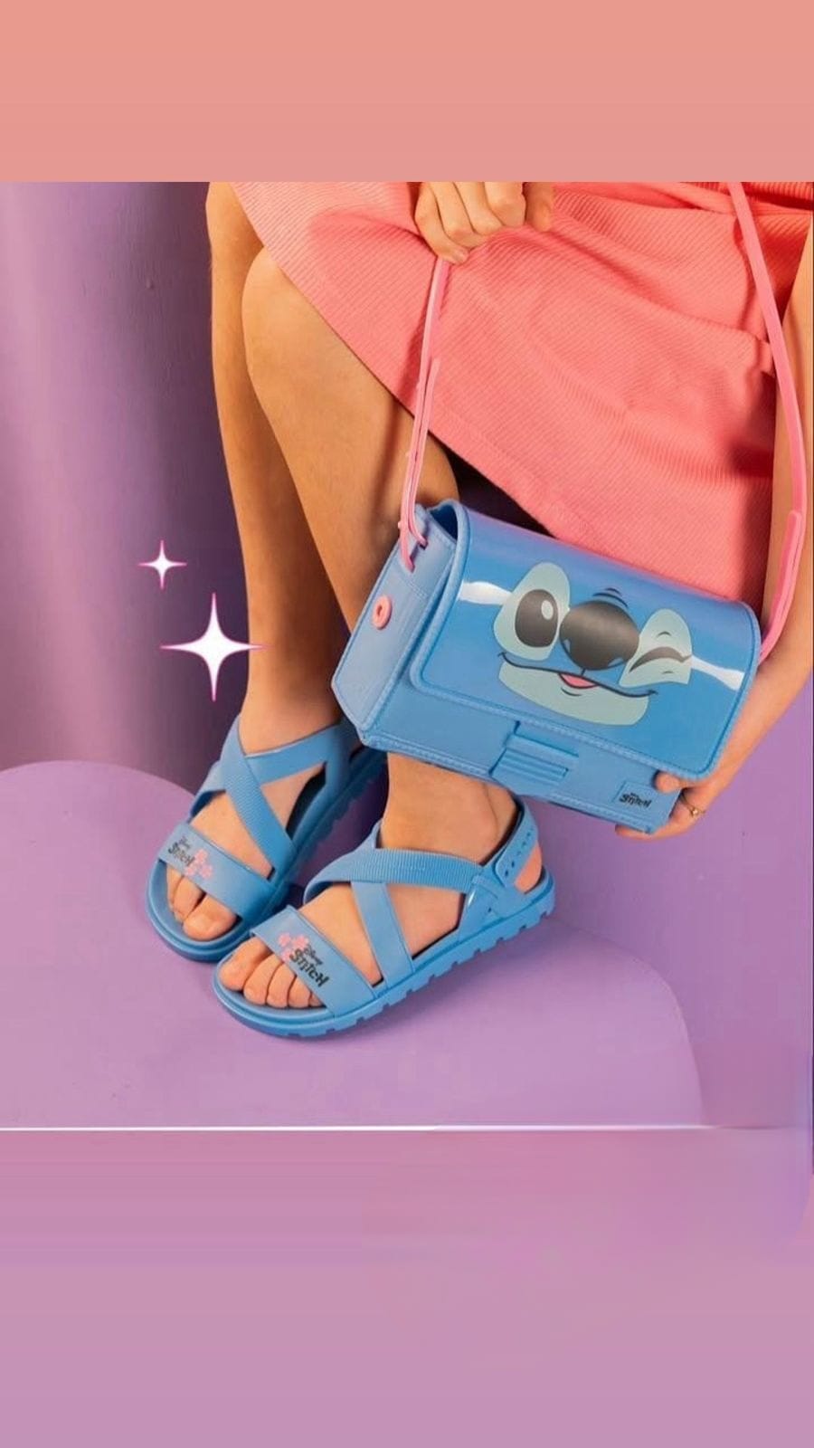 Design exclusivo: tiras cruzadas que dão charme e personalidade, com estampa do Stitch.