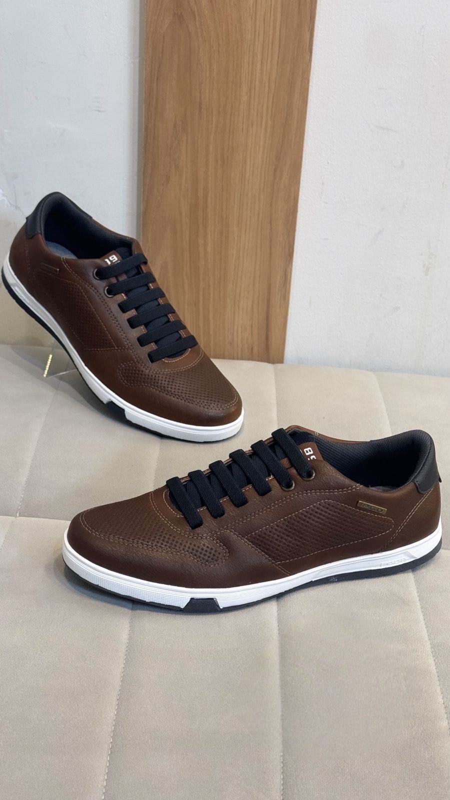 Design casual com perfuros que garantem estilo e respirabilidade;